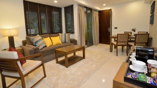 Five additional beach villas were constructed in 1994. All the beach villas are set around the island in a horse shoe pattern. These villas are rectangular, with dark brown Decrabond tile roofs, and the older villas’ white walls reveal, in their hearts, the original coral structures within. Inside, they maintain the white theme, interspersed with touches of brown; the pyramid shaped ceiling is white, the beams are dark wood. The wardrobes and mini bar cabinet are fashioned in such a way that they double up as parts of the wall that frame the main door and the door to the bathroom. This concept is the brainchild of Mocchetti. The rooms have timber flooring, which is indistinguishable from the shade of the furniture. A king sized bed, flanked by two lamps on end tables is on one end of the room. Opposite it, on the other end a mirror takes up the place of a TV, which the hotel has seemingly eschewed. Underneath the mirror is a desk, with an iPod docking station. The rooms are elegant, simple, unpretentious. White curtains block the glass doors that lead out to the wooden deck, where you can gaze at the shimmering expanse of the ocean.
