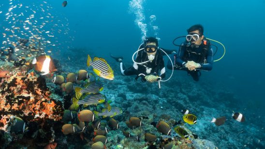 The café focuses exclusively on authentic Maldivian dishes, using locally sourced ingredients from nearby islands as well as the chef’s own garden within the resort. Cooking classes offer guests the opportunity to prepare classic Maldivian dishes, such as curry and local salads, under the guidance of Chef Farish—culminating in a delicious homemade lunch.
