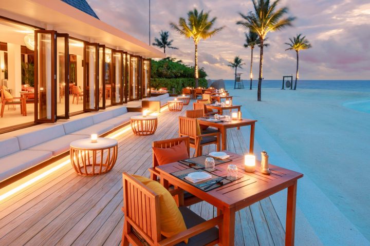 Located along a tranquil stretch of beach, the restaurant offers panoramic views of the turquoise lagoon—an idyllic setting in which guests can savour artfully prepared dishes and cocktails from the Mar-Umi bar, created by skilled mixologists.